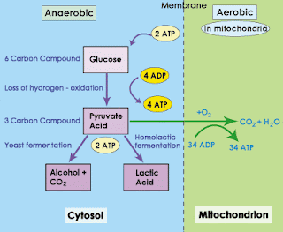 Selama sembilan glikolisis 'langkah, glukosa 6-karbon molekul dipecah menjadi dua molekul 3-karbon piruvat.  Reaksi tidak terjadi secara spontan: 2 molekul ATP harus dipecah untuk mendorong pemisahan glukosa ke dalam 2 pyruvates.  Namun, dalam perjalanan dari pemecahan glukosa, reaksi glikolisis menghasilkan empat ATP, menghasilkan keuntungan bersih dua ATP untuk seluruh proses.  Glikolisis juga menghasilkan produksi 2 molekul NADH, yang akhirnya memainkan peran penting dalam produksi ATP tambahan dalam rantai transpor elektron.  Glikolisis sendiri adalah sebuah proses anaerobik.  Setelah sel telah selesai glikolisis, dan tergantung pada keadaan di mana sel menemukan dirinya, sel yang dapat pindah ke proses respirasi aerobik dan memulai siklus asam sitrat atau melanjutkan dengan respirasi aneorobic kurang efisien dalam proses yang disebut fermentasi , tertutup di bagian ketiga dari SparkNote ini pada glikolisis.